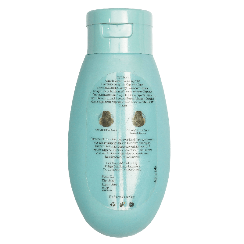 Richnex Copper Enriched Anti-Hairfall Shampoo is formulated with the strengthening power of copper and herbal extracts to reduce hair fall and nourish the scalp. It deeply cleanses, revitalizes hair roots, and promotes healthy growth. This gentle, sulfate-free formula leaves your hair stronger, shinier, and naturally smooth with every wash.